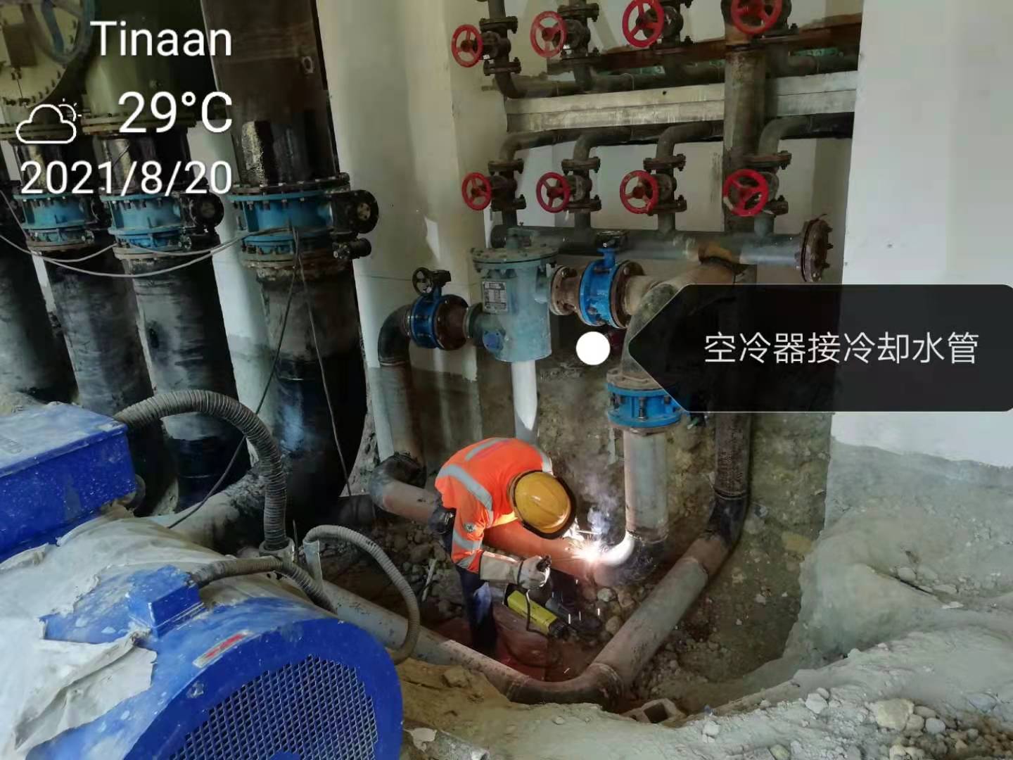 8月19日,污水池、办公室、机房排水沟、凝结器抽气管、循环水管五处施工中
